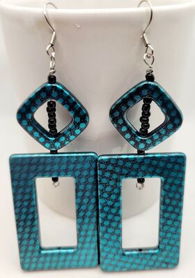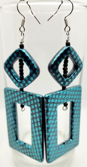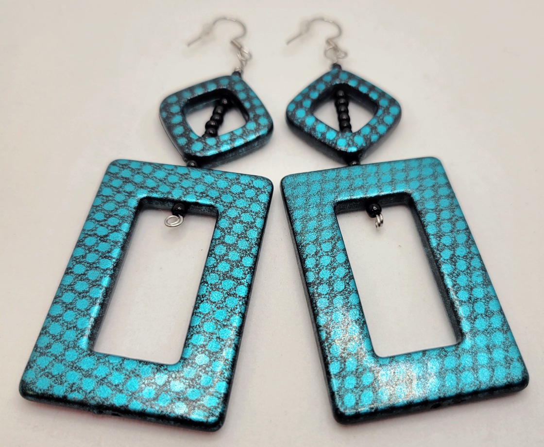 Earrings, Polka Dot Acrylic Retangle and Diamond 4" Dangles