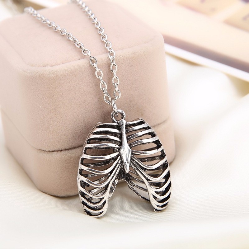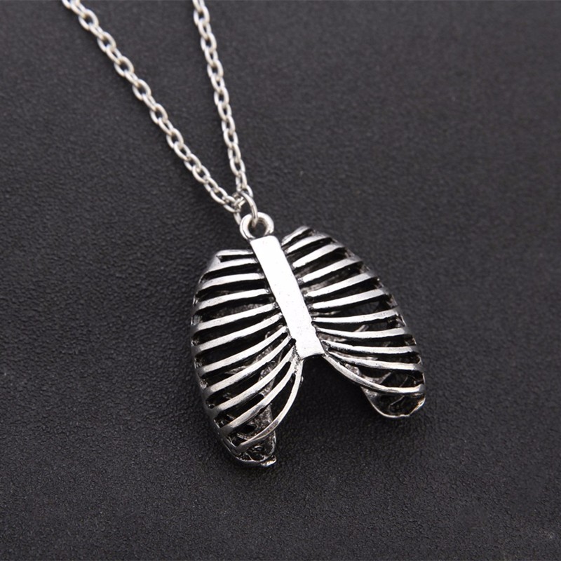 Necklace, Vintage Skeleton Rib Cage 35x33mm Silver Pendant Men's Necklace, 20" Chain
