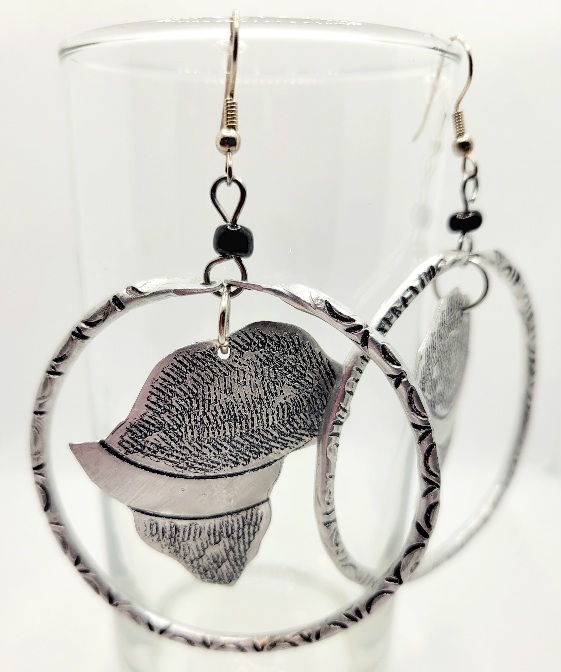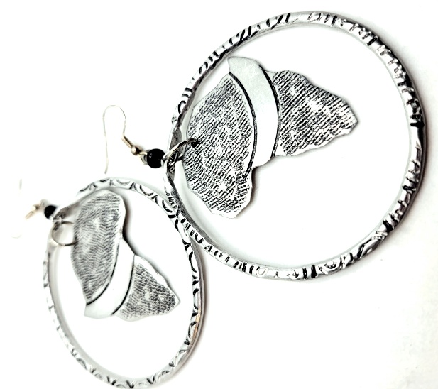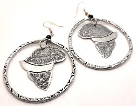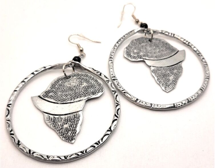 Earrings, Aluminum Carved African Map Hoops